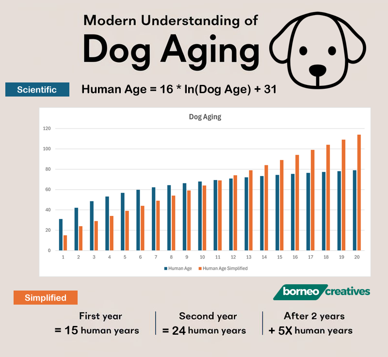 This formula suggests that a one-year-old dog is like a 31-year-old human, and a two-year-old dog is akin to a 42-year-old human. In conclusion, while the “seven-year rule” is easy to remember, it is not an accurate reflection of how dogs age. Understanding the nuances of canine aging, including breed and size differences, provides a more realistic view of a dog’s age in human years.